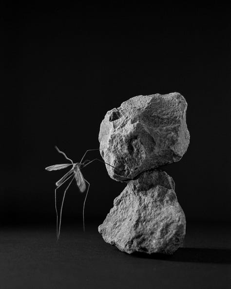 a mosquito counterweighting the weight.