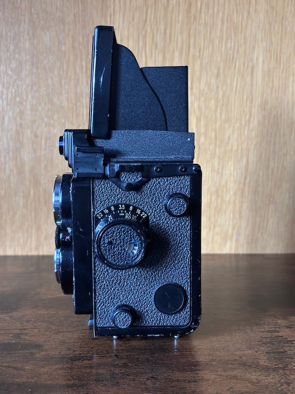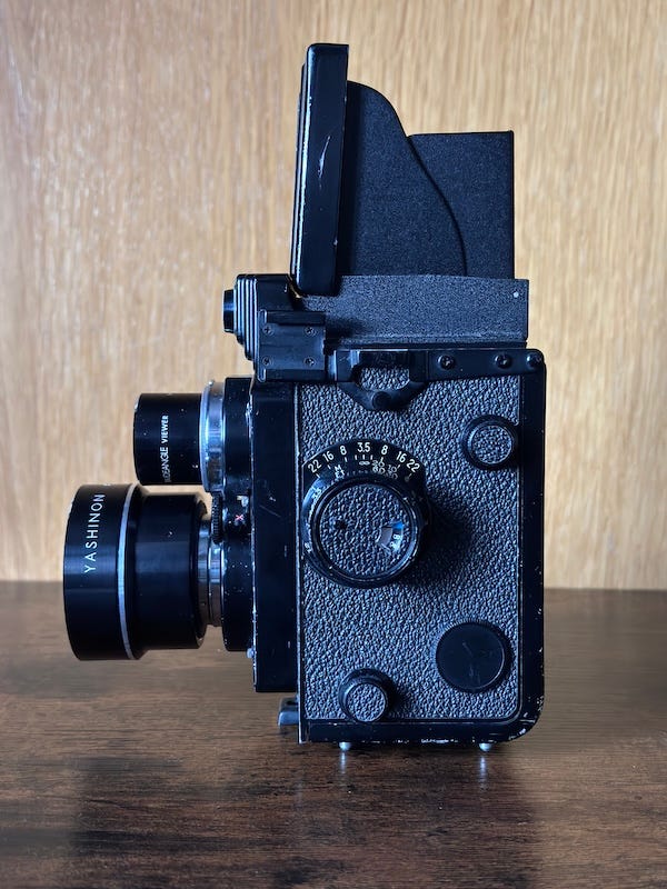 Also, using any of the auxiliary lenses on the Yashica makes the scale on the focusing knob unusable, hence looking through the viewfinder becomes essential. Worth saying at this point, focusing with the auxiliary lens attached is not the easiest. The viewing lens is quite soft, and most of the time, the use of the camera’s focusing loupe comes in handy.